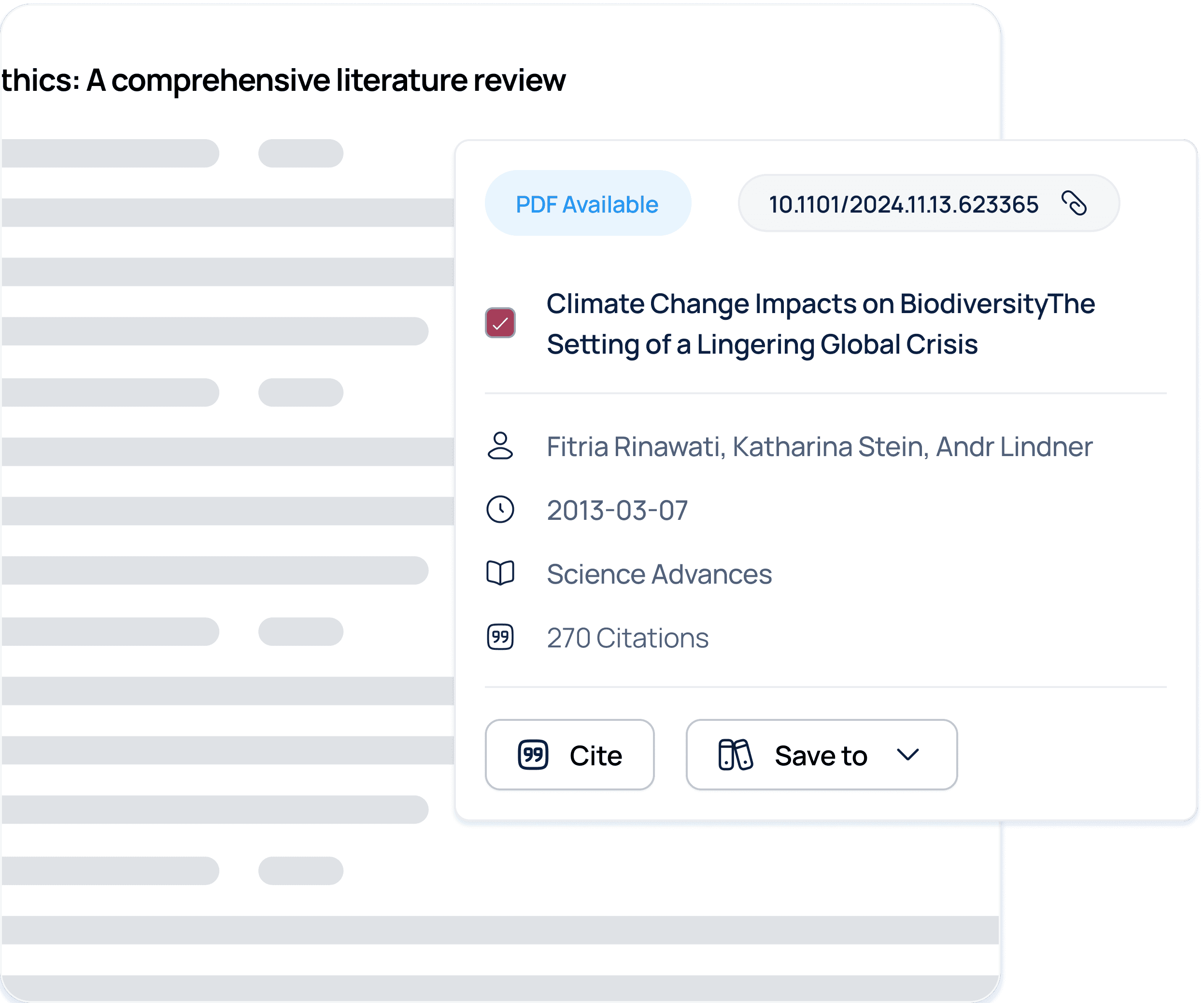 Turn weeks of research into hours with AI-powered summaries and citations